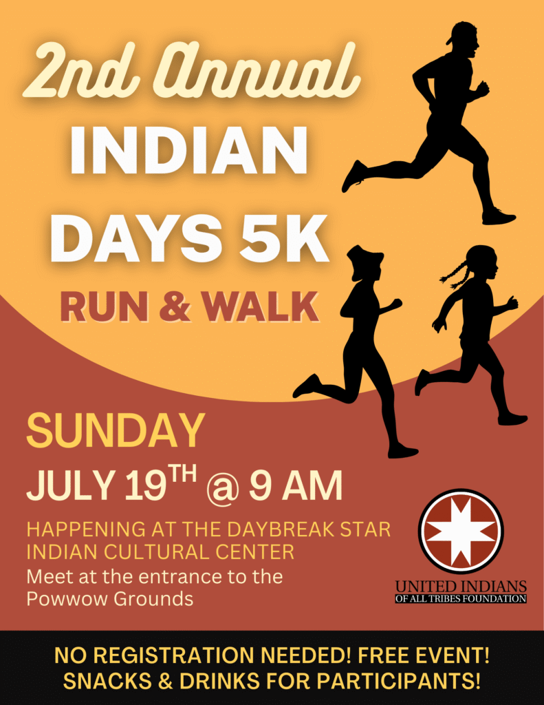 Join us on the final day of the 37th Annual Seafair Indian Days Powwow weekend for a morning of health, wellness, and community spirit! Whether you want to set a personal record or enjoy a scenic walk with the family, the 2nd Annual Indian Days 5K Run & Walk is the perfect way to kick off the last day of celebrations.